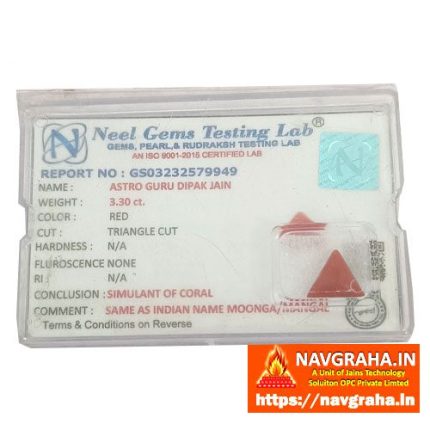 Authentic Natural Gemstone - Red Coral Moonga Natural Triangle 10 Carat Approx. Certified authentic, blessed by traditional rituals. Fast shipping across India.
