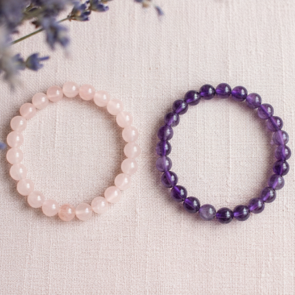 Love Healing Crystal Bracelets: Amethyst + Rose Quartz Pair