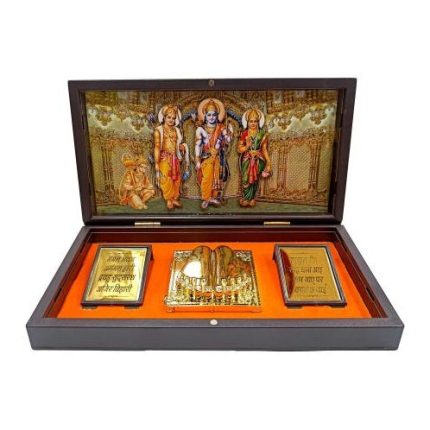 Multicolour Sri Ram Parivar inside Gold Plated Charan Padhuka Box Corporate Gift 8 x 4 inch