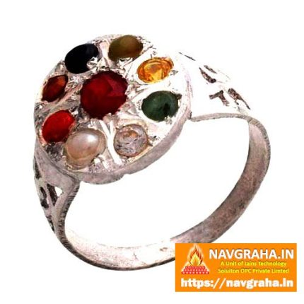 Premium Spiritual Product - Navgraha Ring Silver Round Shape with Natural Stones. Certified authentic, blessed by traditional rituals. Fast shipping across I...