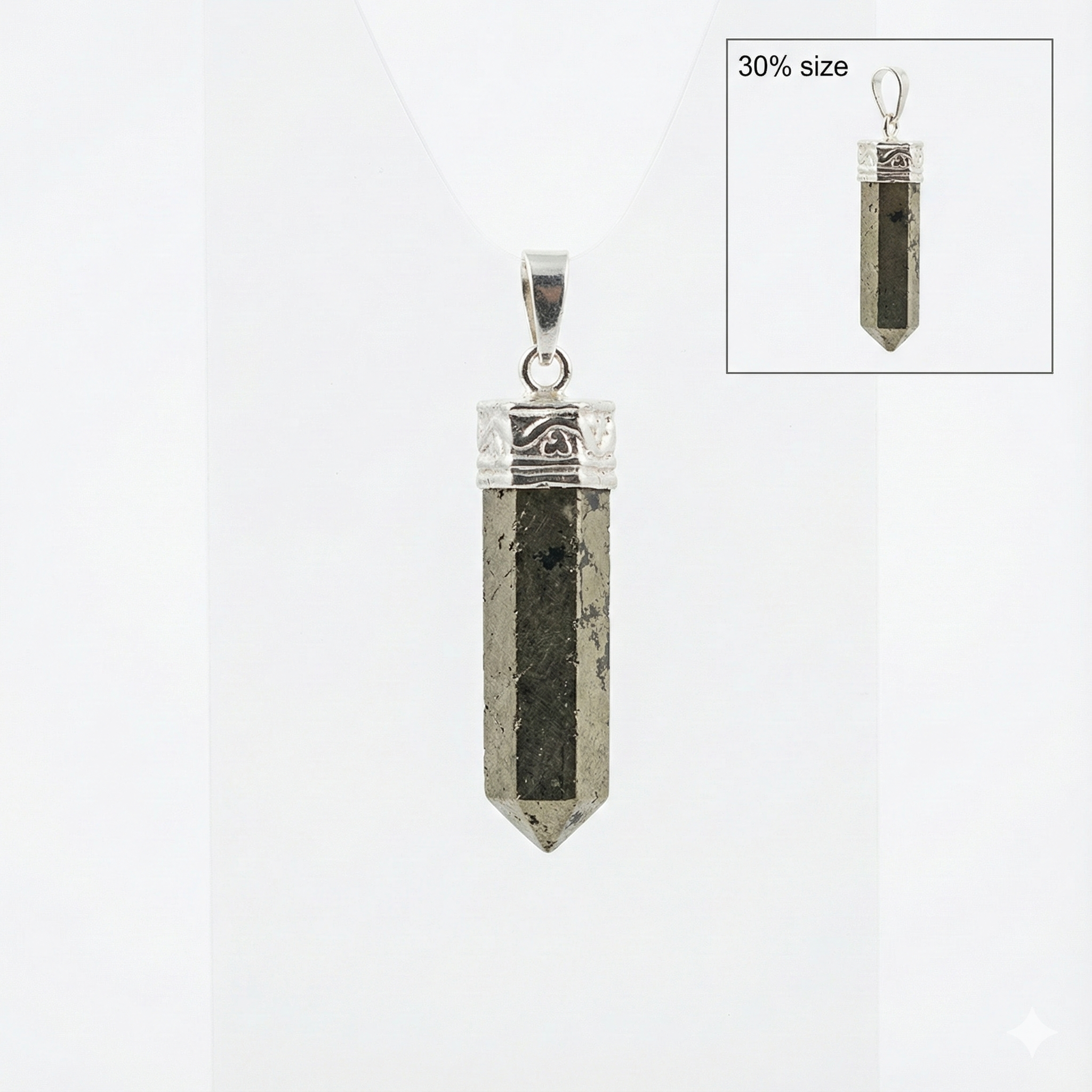 Handcrafted Pyrite pendant featuring natural golden stone traditionally associated with abundance practices. Sterling silver setting with durable cord. Perfect for daily spiritual wear and meditation.