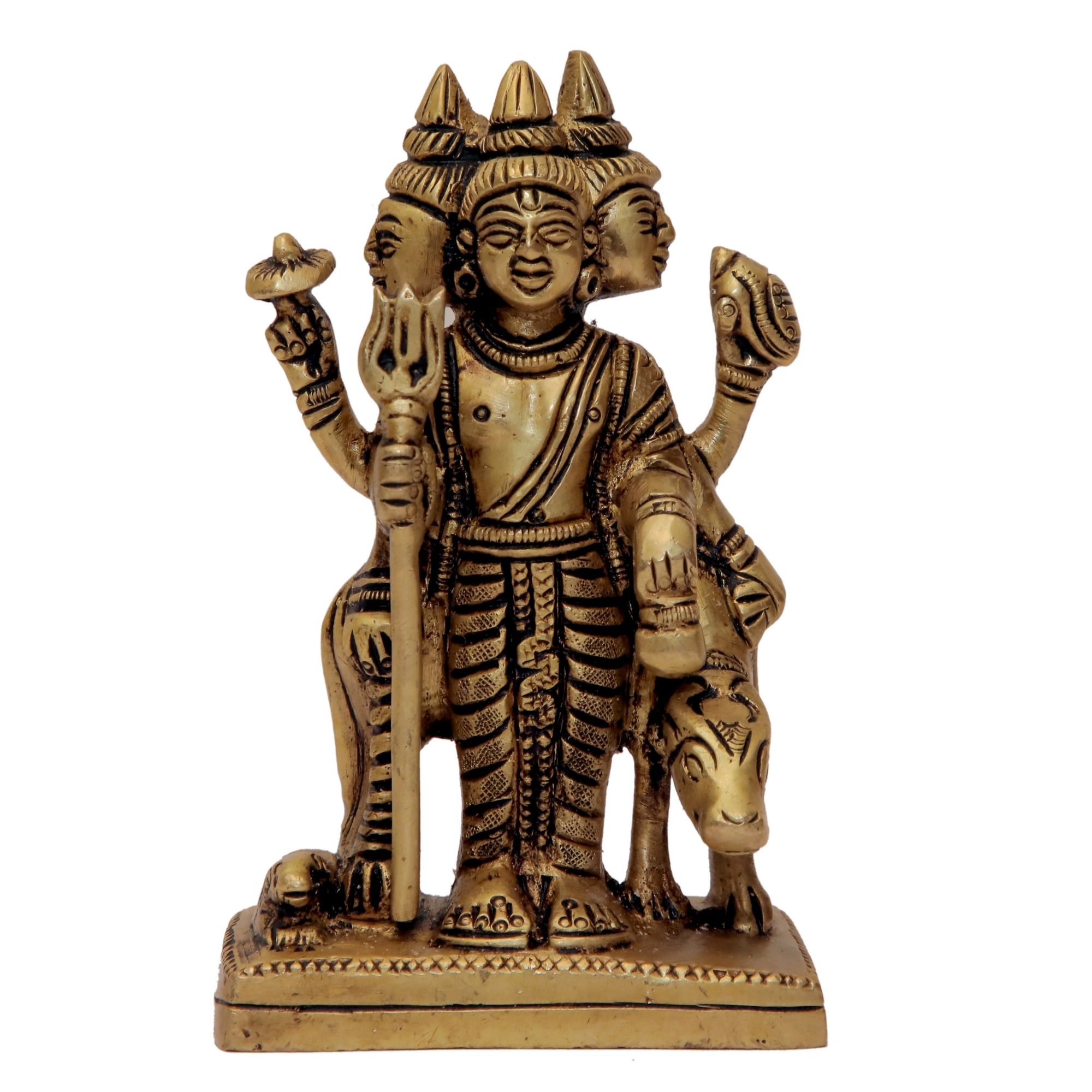 Brass Lord Dattatreya with Cow Sculpture Handicrafts | Authentic Hindu Deity for Divine Blessings & Protection