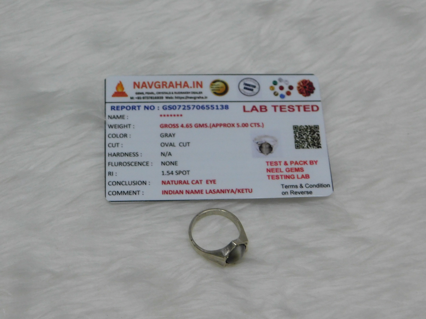 **Cat Eye Silver Ring 5.0 Ct Navgraha Certified – Navgraha** – Premium Spiritual Product for Divine Blessings & Positive Energy