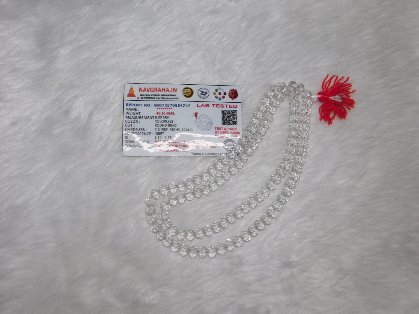 Clear Quartz Natural Mala 108 Beads 8 MM Navgraha Certified – Navgraha