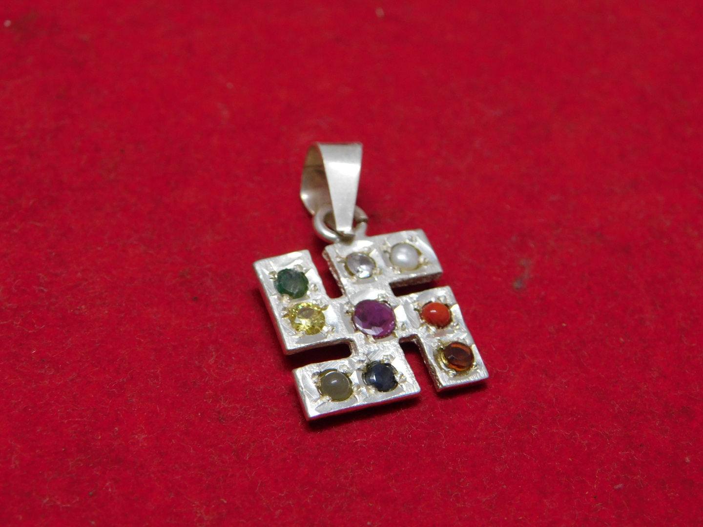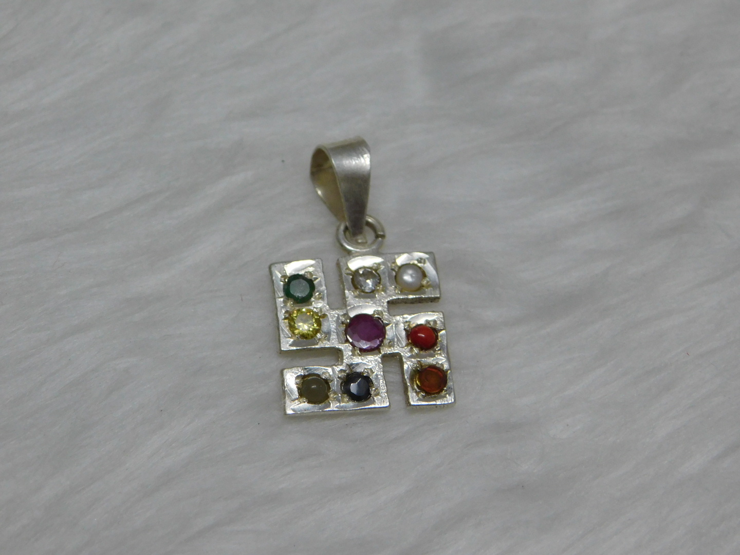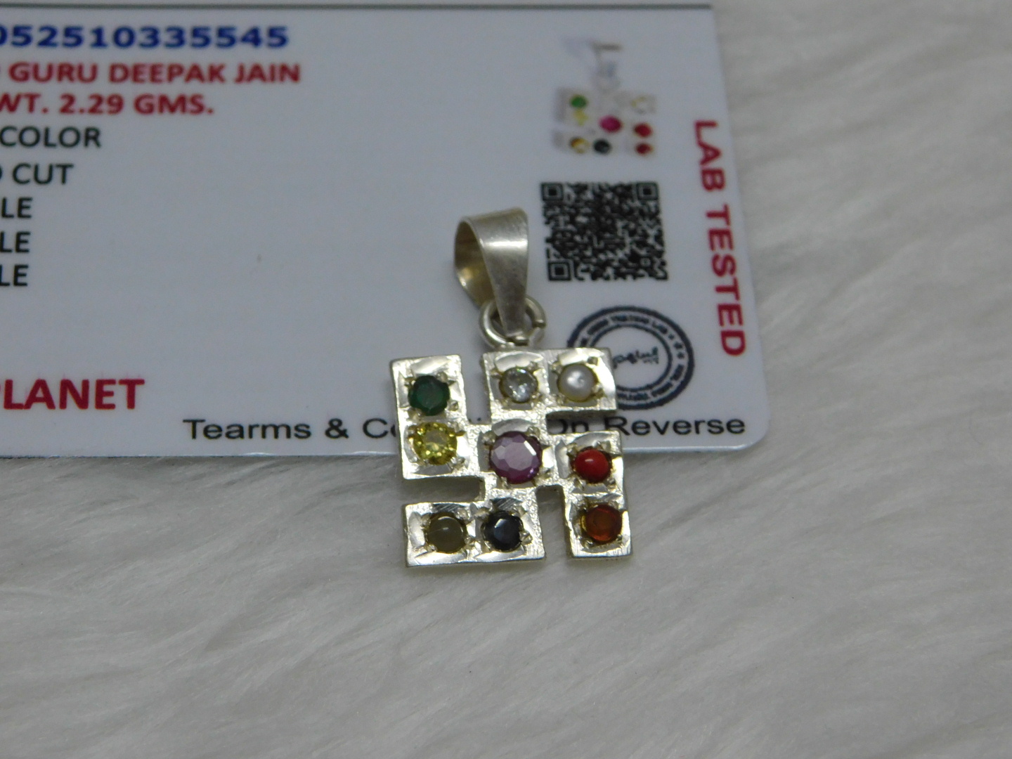 Nine Planets Silver Pendant Swastik Small Neel Gems Certificate – Navgraha